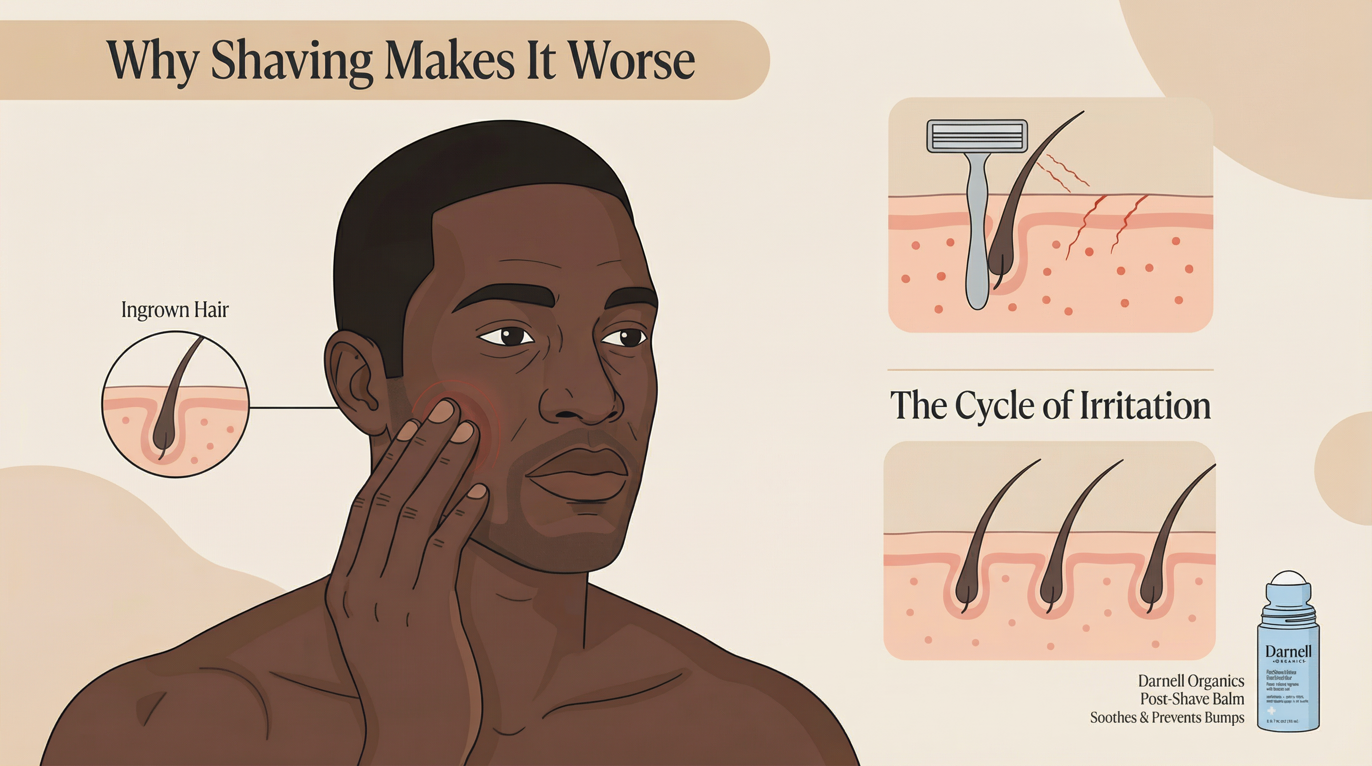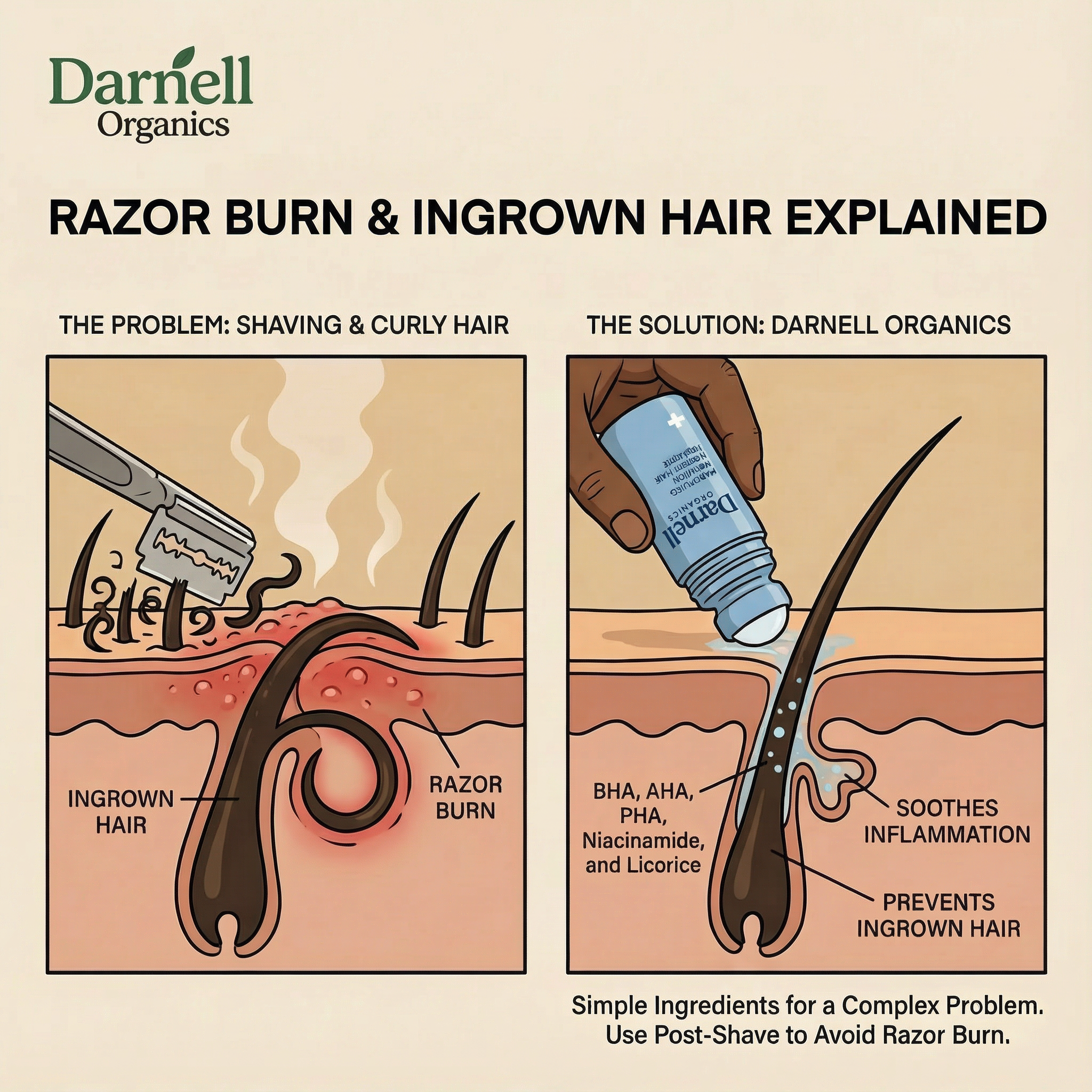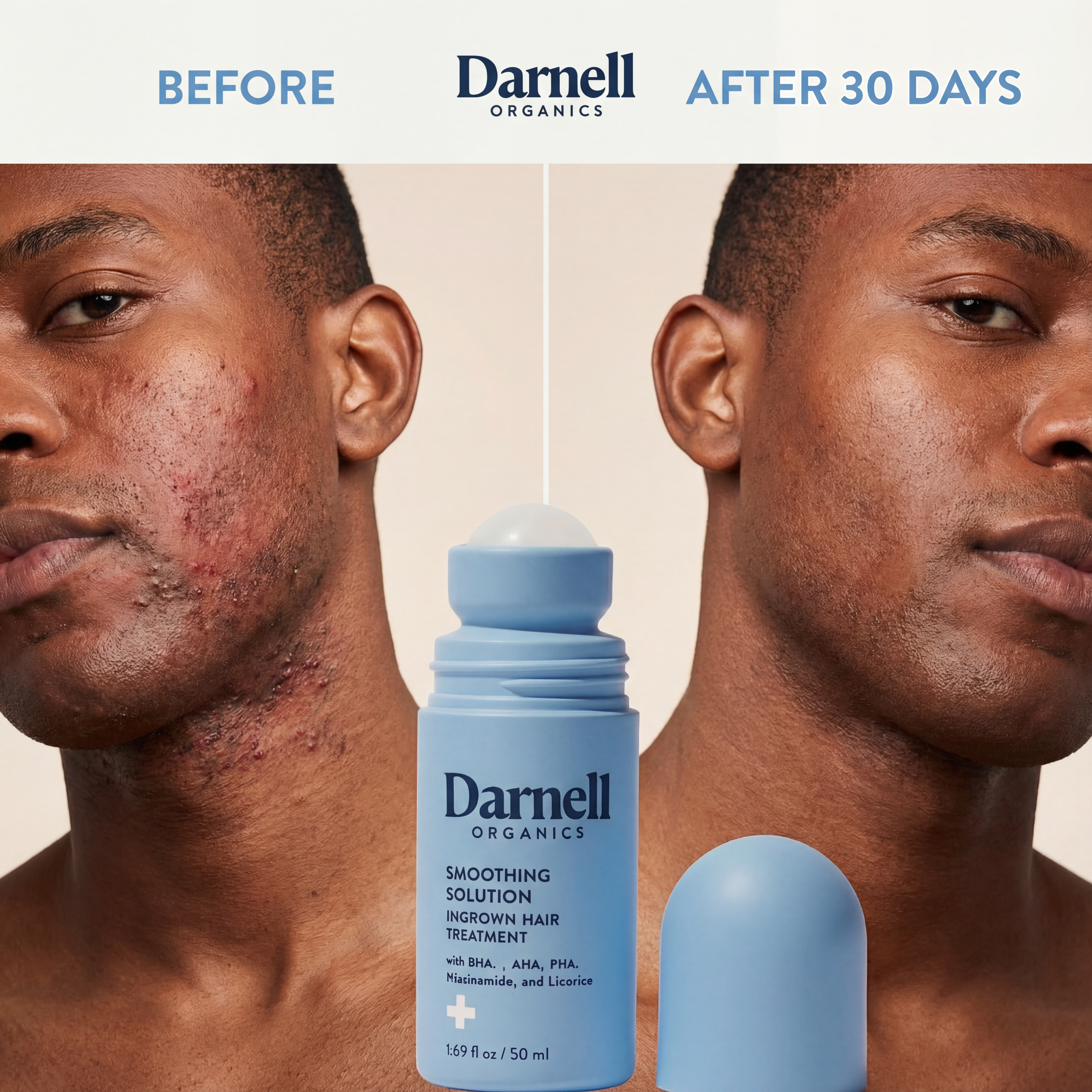 Razor bumps leave receipts—dark spots and uneven texture that stick around for months. Our formula includes Niacinamide and Licorice Root to actively fade hyperpigmentation while treating active bumps. You're not just clearing up—you're restoring.