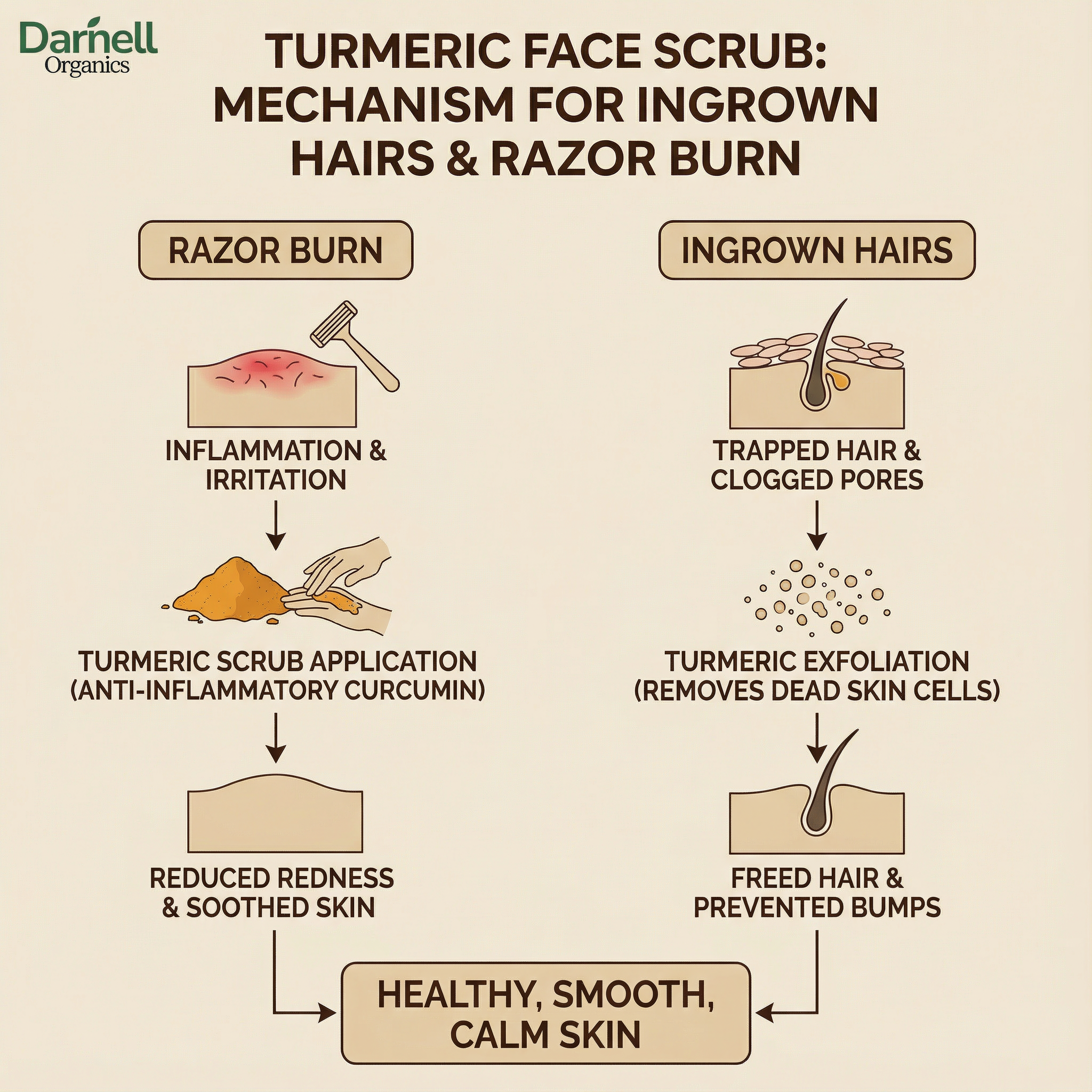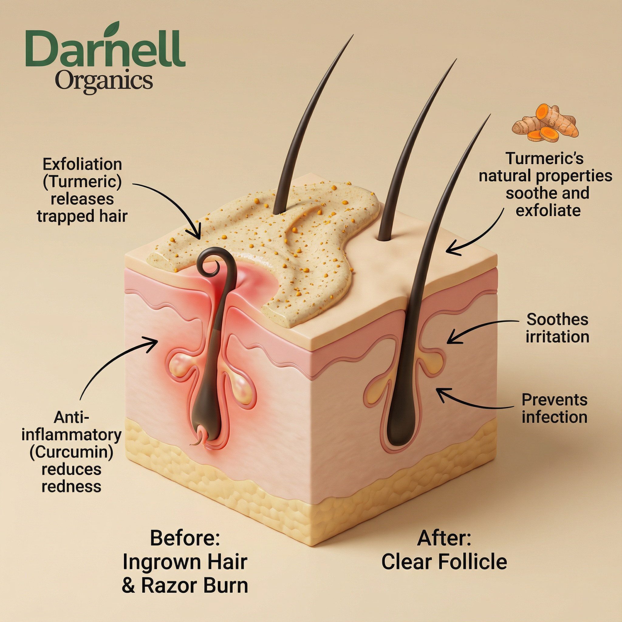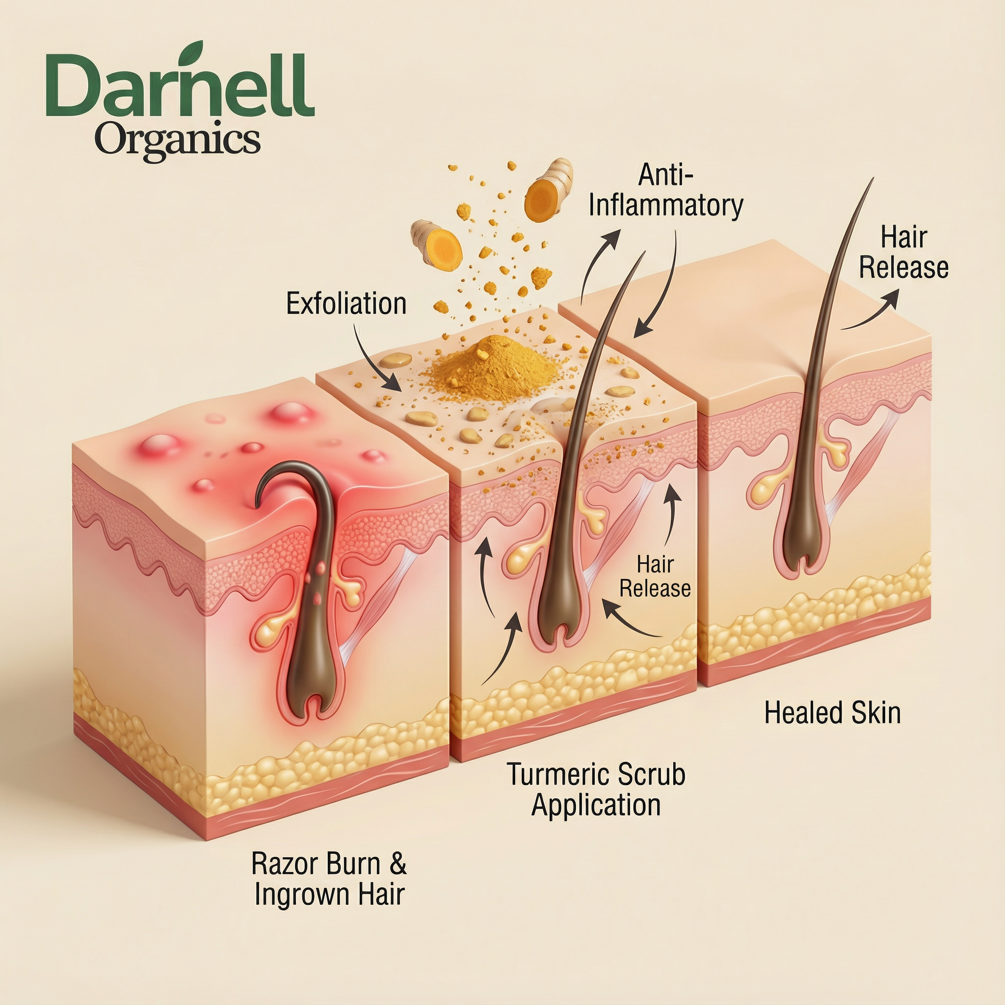 Most razor burn starts before the blade even touches your skin. Dead skin cells and clogged pores trap hair beneath the surface, setting you up for ingrowns before you even begin. Our Turmeric Scrub clears that buildup, lifts hair follicles, and creates a smooth canvas for your razor to glide across. Use it before every shave and you're not just exfoliating — you're preventing the problem at the source.